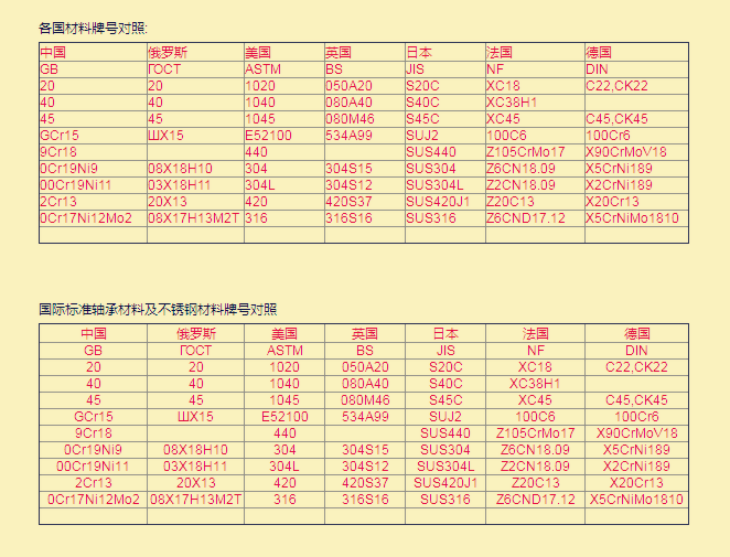 每個國家對于不銹鋼軸承的材料牌號是不一樣的,大家在選購的是應(yīng)該要注意區(qū)分: